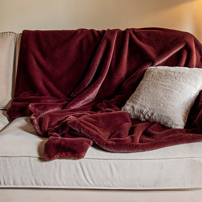 Double-sided sofa or bed faux fur throw blanket available in two colors.