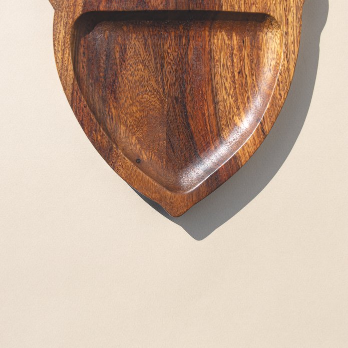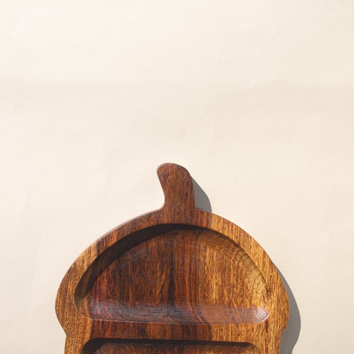 Walnut-shaped wooden plate designed with acacia wood, suitable for serving.